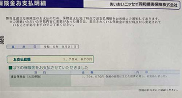 申請サポートで保険金が下り、そのまま修理までお願いできて本当に助かりました!